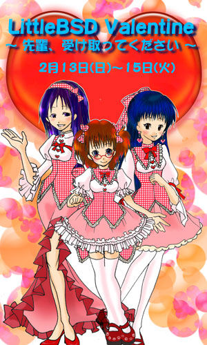 | 「LittleBSD Valentine〜 先輩、受け取ってください 〜」の前夜祭としてプチイベントを真夜中に開催します。幸せになれるのは運を持った数少ない一人。あなたも自分の運を試しませんか? |